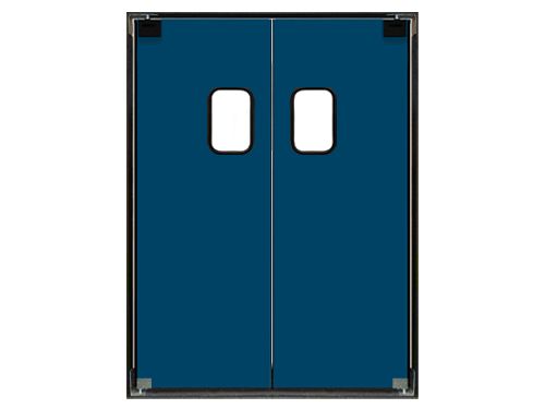 Easy to push open and quicker to close! The full length back spine contains the in-line cam, coil spring gravity assist hinge system that helps the door close fast. The hinge allows for extra wide swing, reducing damage from "wrapping" the jamb. Panel centering adjustment is located at the door bottom.Large Window
