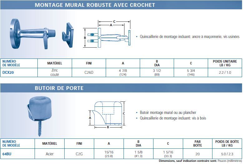 * Différents butoirs sont également disponibles pour répondre à vos besoins spécifiques.Butoirs muraux